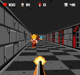 A brand new, free, 8 bit-styled shooter with 32x32 textures and a palette of 64 colors. It is inspired by games like Wolfenstein (obviously) and Metroid (not obvious until you play the game).
